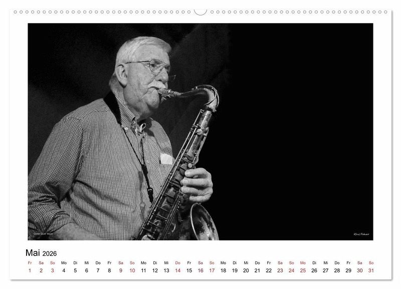 Die Herzen aller Freunde des Modernen Jazz schlagen höher, wenn sie die Namen der in diesem Kalender abgebildeten Musiker hören. Der Kalender umfasst dreizehn Portraits international bekannter Jazzmusiker, aufgenommen bei ihren Auftritten in klassischem Schwarzweiß.