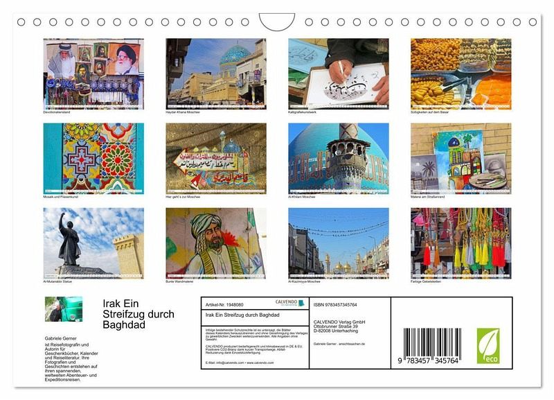 QUALITÄT - Hochwertiger Fotokalender mit 12 wunderschönen Motiven auf lichtbeständigem Bilderdruckpapier, robuste Spiralbindung mit Aufhängebügel.NACHHALTIG - deutliche Abfallreduzierung durch bedarfsgerechteEinzelstückfertigung, umweltfreundliches FSC-zertifiziertes Papier, Produktion in Deutschland, klimabewusste Logistik.PERFEKTES GESCHENK - Kalender für Freunde und Familie, für Kinder und Erwachsene, jung und alt, zu Weihnachten, Geburtstag oder zwischendurch.VIELFALT - Bildkalender in verschiedenen Formaten, z.B. DIN A5, DIN A4, DIN A3 sowie DIN A2. Ob Naturmotiv, Gemälde oder Fotos, ideal für ein persönliches Wohlfühlambiente.Baghdad bietet einen faszinierenden Einblick in die vielfältige Kultur des Irak. von Autor(in): Gabriele Gerner-Haudum