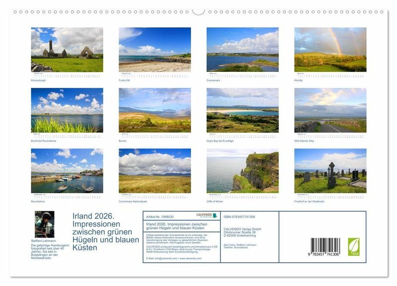PREMIUM-LINIE - Brillanter Fotokalender mit 12 wunderschönen Motiven, Kunstdruck in Hochglanz in Museumsqualität.QUALITÄT - edle Materialien, stabile Rückwand mit 2 innovativen Einstecktaschen für eine optimale Präsentation an der Wand.NACHHALTIG - deutliche Abfallreduzierung durch bedarfsgerechte Einzelstückfertigung, umweltfreundliches FSC-zertifiziertes Papier, Produktion in Deutschland, klimabewusste Logistik.PERFEKTES GESCHENK - Kalender für Freunde und Familie, für Kinder und Erwachsene, jung und alt, zu Weihnachten, Geburtstag oder zwischendurch.12 wunderschöne Fotoimpressionen von Irland von Autor(in): Steffani Lehmann