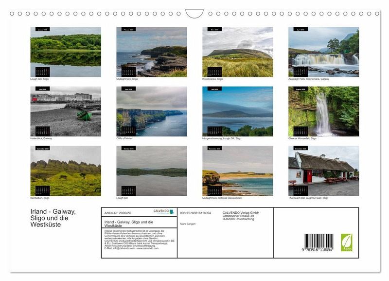 QUALITÄT - Hochwertiger Fotokalender mit 12 wunderschönen Motiven auf lichtbeständigem Bilderdruckpapier, robuste Spiralbindung mit Aufhängebügel.NACHHALTIG - deutliche Abfallreduzierung durch bedarfsgerechte Einzelstückfertigung, umweltfreundliches FSC-zertifiziertes Papier, Produktion in Deutschland, klimabewusste Logistik.PERFEKTES GESCHENK - Kalender für Freunde und Familie, für Kinder und Erwachsene, jung und alt, zu Weihnachten, Geburtstag oder zwischendurch.VIELFALT - Bildkalender in verschiedenen Formaten, z.B. DIN A5, DIN A4, DIN A3 sowie DIN A2. Ob Naturmotiv, Gemälde oder Fotos, ideal für ein persönliches Wohlfühlambiente.Galway, Sligo und die Westküste von Autor(in): Mark Bangert