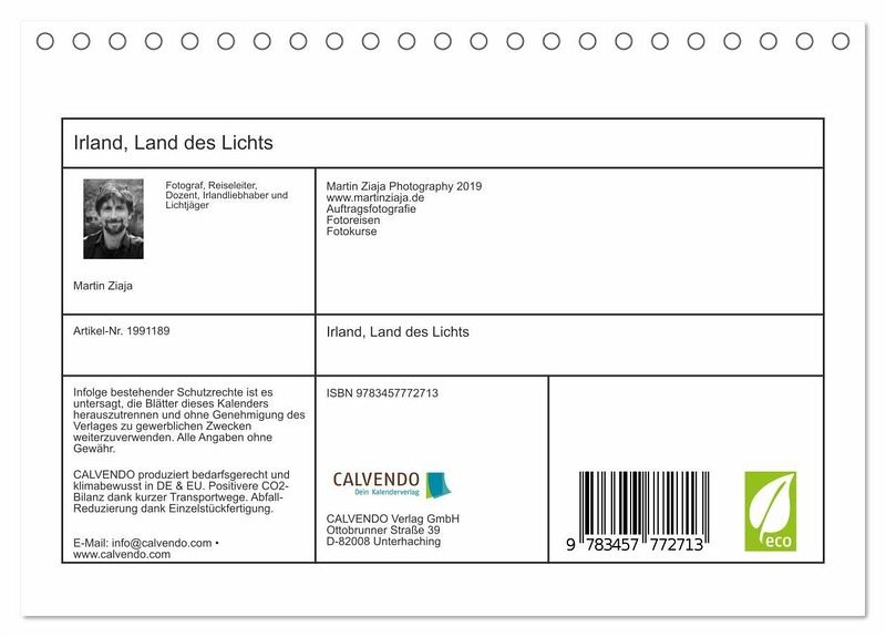 QUALITÄT - Hochwertiger Fotokalender mit 12 wunderschönen Motiven auf lichtbeständigem Bilderdruckpapier, robuste Spiralbindung.NACHHALTIG - deutliche Abfallreduzierung durch bedarfsgerechte Einzelstückfertigung, umweltfreundliches FSC-zertifiziertes Papier, Produktion in Deutschland, klimabewusste Logistik.PERFEKTES GESCHENK - Kalender für Freunde und Familie, für Kinder und Erwachsene, jung und alt, zu Weihnachten, Geburtstag oder zwischendurch.VIELFALT - Bildkalender in verschiedenen Formaten, z.B. DIN A5, DIN A4, DIN A3 sowie DIN A2. Ob Naturmotiv, Gemälde oder Fotos, ideal für ein persönliches Wohlfühlambiente.Eine Reise auf die Grüne Insel: schroffe Küste, wildes Meer und malerische Landschaften.. von Autor(in): Martin Ziaja
