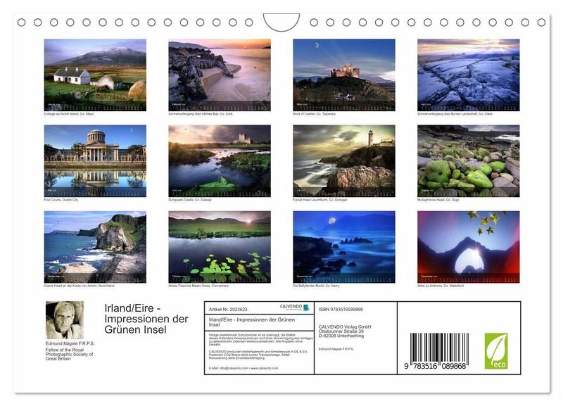QUALITÄT - Hochwertiger Fotokalender mit 12 wunderschönen Motiven auf lichtbeständigem Bilderdruckpapier, robuste Spiralbindung mit Aufhängebügel.NACHHALTIG - deutliche Abfallreduzierung durch bedarfsgerechte Einzelstückfertigung, umweltfreundliches FSC-zertifiziertes Papier, Produktion in Deutschland, klimabewusste Logistik.PERFEKTES GESCHENK - Kalender für Freunde und Familie, für Kinder und Erwachsene, jung und alt, zu Weihnachten, Geburtstag oder zwischendurch.VIELFALT - Bildkalender in verschiedenen Formaten, z.B. DIN A5, DIN A4, DIN A3 sowie DIN A2. Ob Naturmotiv, Gemälde oder Fotos,ideal für ein persönliches Wohlfühlambiente.Impressionen aus Irland von Autor(in): Edmund Nägele