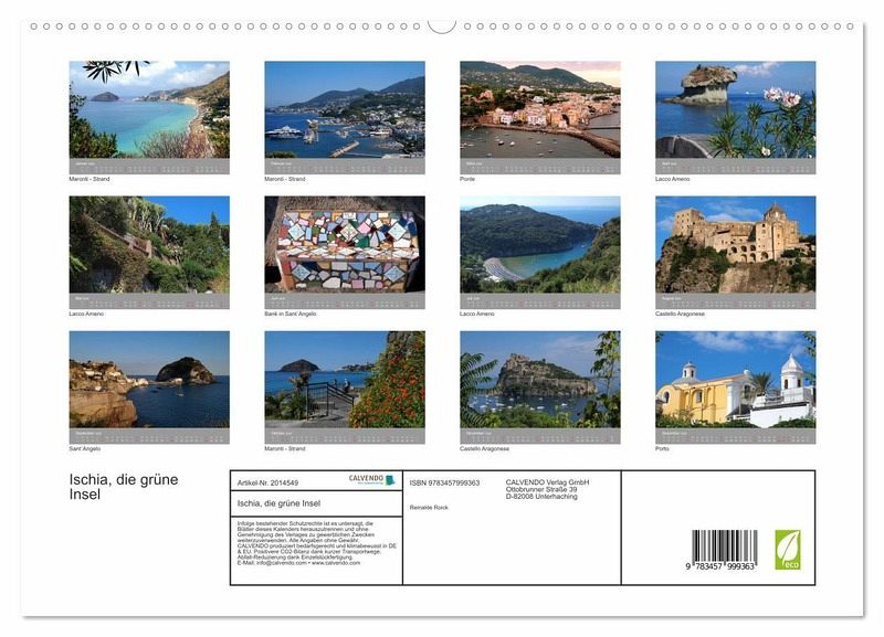 Dieser Kalender der italienischen Insel Ischia fasziniert durch seine abwechslungsreichen Bilder. Die wunderschöne grüne Natur in Verbindung mit dem herrlich blauem Meer im Golf von Neapel.