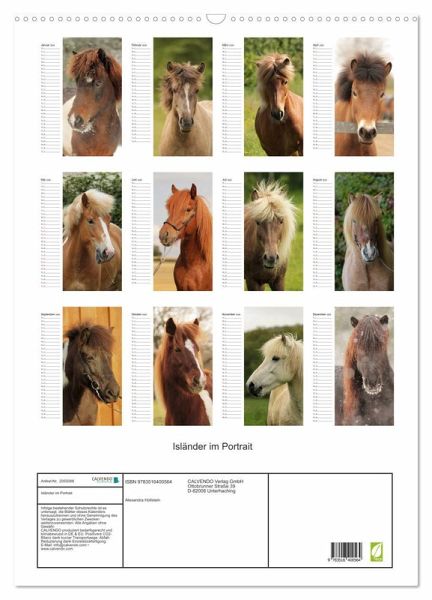 QUALITÄT - Hochwertiger Fotokalender mit 12 wunderschönen Motiven auf lichtbeständigem Bilderdruckpapier, robuste Spiralbindung mit Aufhängebügel.NACHHALTIG - deutliche Abfallreduzierung durch bedarfsgerechte Einzelstückfertigung, umweltfreundliches FSC-zertifiziertes Papier, Produktion in Deutschland, klimabewusste Logistik.PERFEKTES GESCHENK - Kalender für Freunde und Familie, für Kinder und Erwachsene, jung und alt, zu Weihnachten, Geburtstag oder zwischendurch.VIELFALT - Bildkalender in verschiedenen Formaten, z.B. DIN A5, DIN A4, DIN A3 sowie DIN A2. Ob Naturmotiv, Gemälde oder Fotos, ideal für ein persönliches Wohlfühlambiente.Pferde mit Charakterköpfen - Isländer im Portrait von Autor(in): Alexandra Schäfer