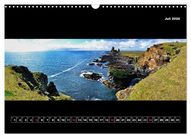 Die isländische Landschaft ist atemberaubend schön, unglaublich abwechslungsreich und sehr weitläufig. Insbesondere um die Weite der Landschaft einzufangen und wiederzugeben, finden Sie in diesem Kalender ausschließlich detailreiche Panoramaaufnahmen.