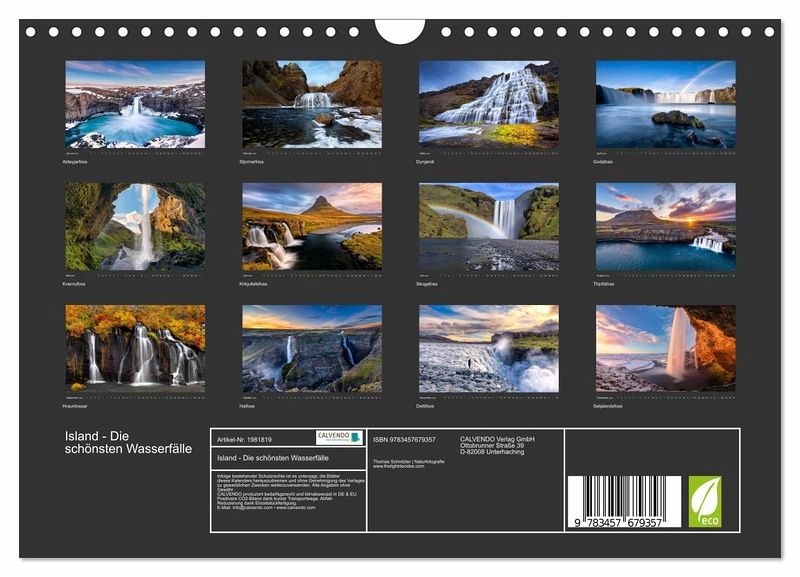 Die Landschaft Islands ist eine der atemberaubendsten auf der ganzen Welt. Sie ist geprägt durch die Schönheit von Lavaformationen, glitzerndem Eis und mächtigen Wasserfällen. Dieser Kalender ist ein Tribut an die unvergleichliche Schönheit der isländischen Wasserfälle. Er soll uns daran erinnern, diese Wunder zu schützen, damit auch zukünftige Generationen sie erleben und genießen können.