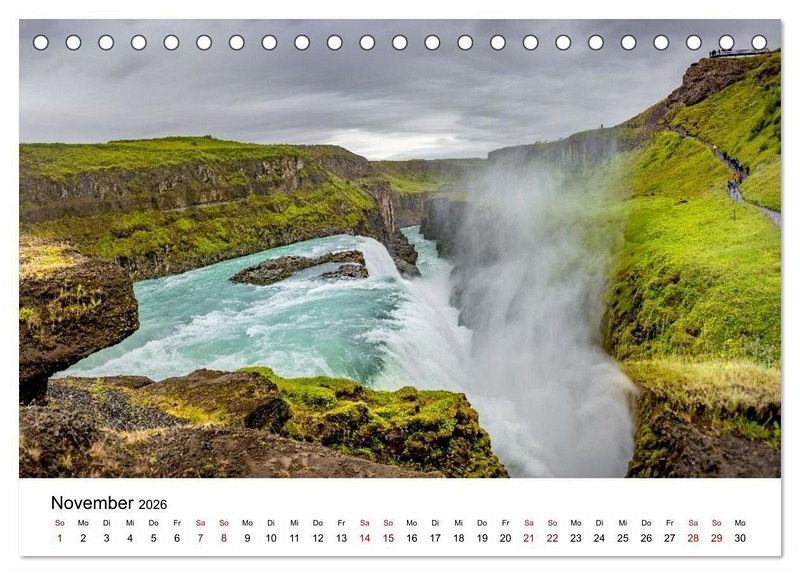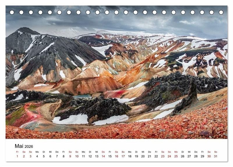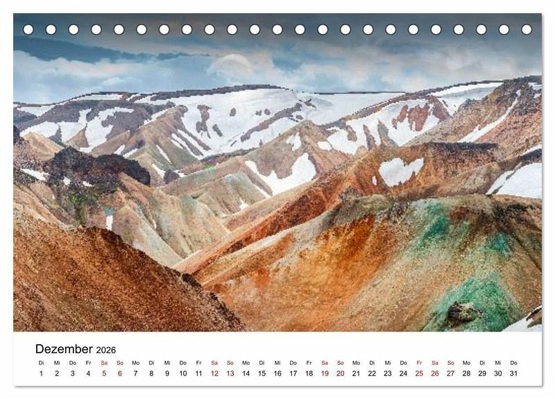 Island - ein Land, in dem die Elemente der Natur aufeinandertreffen. Zwischen lodernden Vulkanen, dampfenden Geothermalfeldern, tosenden Wasserfällen und endlosen Gletschern zeigt sich die Erde in ihrer ursprünglichsten Form. Dieser Kalender führt durch magische Landschaften: von den Marslandschaften Hverirs über die bunten Rhyolithberge in Landmannalaugar bis zur eisigen Gletscherlagune Jökulsárlón. Island - eine Reise zwischen Feuer und Eis.