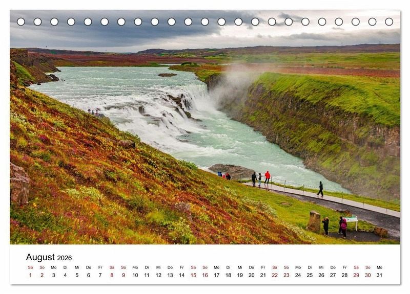 August: Gullfoss, riesiger zweistufiger Wasserfall