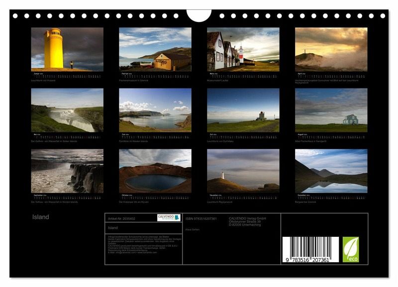 Ein Kalender, der die Vielfältigkeit und Schönheit Islands präsentiert. Ständig wechselnde Licht- und Wetterverhältnissse in Verbindung mit traumhaften Motiven sind in einzigartigen Momenten festgehalten durch den Fotografen Klaus Gerken.