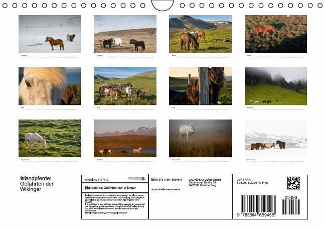Dieser aufwändig erstellte Fotokalender des Naturfotografen Norman Preißler begeistert mit spektakulären Motiven der faszinierenden Islandpferde. Der Kalender enthält hochwertige Fotografien der Isländer in ihrem natürlichen Lebensraum.Die Islandpferde wurden durch die Wikinger nach Island gebracht und trugen wesentlich dazu bei, Island zu besiedeln.