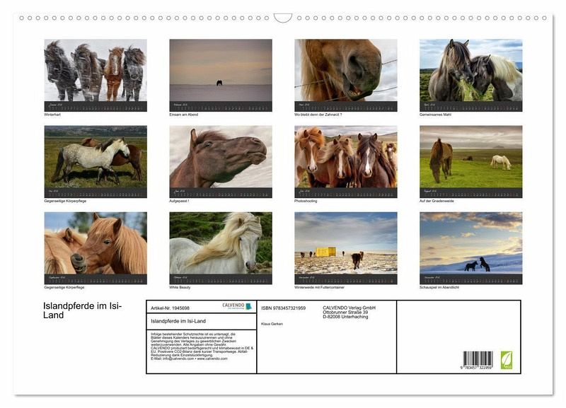 QUALITÄT - Hochwertiger Fotokalender mit 12 wunderschönen Motiven auf lichtbeständigem Bilderdruckpapier, robuste Spiralbindung mit Aufhängebügel.NACHHALTIG - deutliche Abfallreduzierung durch bedarfsgerechte Einzelstückfertigung, umweltfreundliches FSC-zertifiziertes Papier, Produktion in Deutschland, klimabewusste Logistik.PERFEKTES GESCHENK - Kalender für Freunde und Familie, für Kinder und Erwachsene, jung und alt, zu Weihnachten, Geburtstag oder zwischendurch.VIELFALT -Bildkalender in verschiedenen Formaten, z.B. DIN A5, DIN A4, DIN A3 sowie DIN A2. Ob Naturmotiv, Gemälde oder Fotos, ideal für ein persönliches Wohlfühlambiente.Erleben Sie Islandpferde in ihrer natürlichen Umgebung und ganzen Schönheit von Autor(in): Klaus Gerken