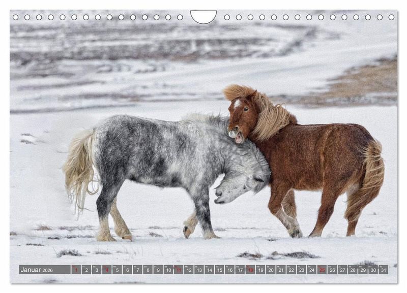 Tauchen Sie ein in die faszinierende Welt der Islandpferde und entdecken Sie die atemberaubende Schönheit Islands. Erleben Sie die magischen Momente, die diese einzigartigen Pferde in ihrer ursprünglichen Heimat bieten. Jeder Monat präsentiert eindrucksvolle Aufnahmen, die die Robustheit und Eleganz der Islandpferde inmitten der spektakulären isländischen Landschaft zeigen. Ideal für Pferdeliebhaber und Naturliebhaber gleichermaßen, bringt dieser Wandschmuck ein Stück nordischer Wildnis in Ihr Zuhause. Lassen Sie sich von den wechselnden Jahreszeiten und den vielfältigen Facetten der Islandpferde verzaubern und genießen Sie die pure Natur