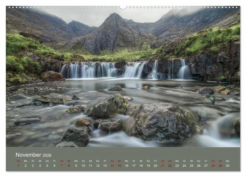 Isle of Skye fasziniert alle Besucher mit seiner zerklüfteten Küste, majestätischen Bergen und mystischen Seen. Einsame Hütten schmiegen sich an hohe Berge, wilde Gebirgsbäche versammeln sich zu beeindruckenden Wasserfällen. Eine Landschaft wie gemacht für Landschaftsfotografien, die Sie durch das neue Jahr begleiten und Reiselust wecken werden.