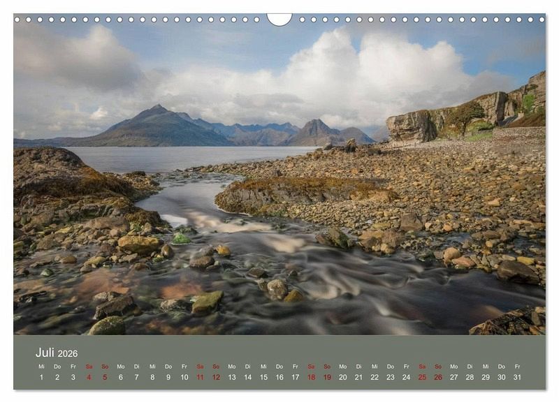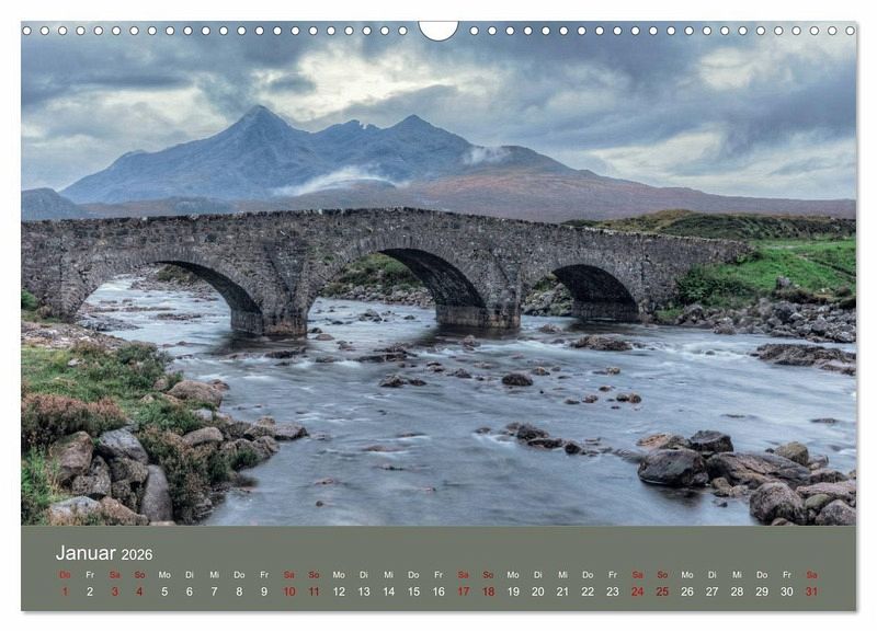 Isle of Skye fasziniert alle Besucher mit seiner zerklüfteten Küste, majestätischen Bergen und mystischen Seen. Einsame Hütten schmiegen sich an hohe Berge, wilde Gebirgsbäche versammeln sich zu beeindruckenden Wasserfällen. Eine Landschaft wie gemacht für Landschaftsfotografien, die Sie durch das neue Jahr begleiten und Reiselust wecken werden.