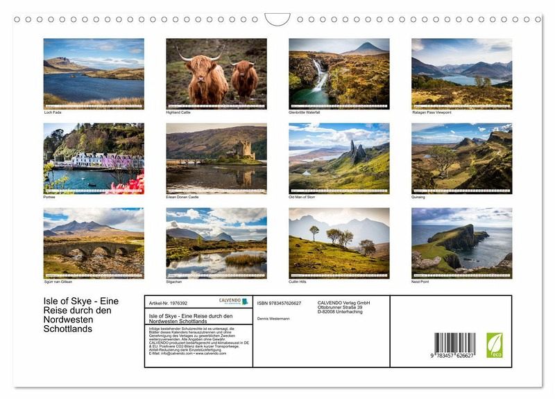 QUALITÄT - Hochwertiger Fotokalender mit 12 wunderschönen Motiven auf lichtbeständigem Bilderdruckpapier, robuste Spiralbindung mit Aufhängebügel.NACHHALTIG - deutliche Abfallreduzierung durch bedarfsgerechte Einzelstückfertigung, umweltfreundliches FSC-zertifiziertes Papier, Produktion in Deutschland, klimabewusste Logistik.PERFEKTES GESCHENK - Kalender für Freunde und Familie, für Kinder und Erwachsene, jung und alt, zu Weihnachten, Geburtstag oder zwischendurch.VIELFALT - Bildkalender in verschiedenen Formaten, z.B. DIN A5, DIN A4, DIN A3 sowie DIN A2. Ob Naturmotiv, Gemälde oder Fotos, ideal für ein persönliches Wohlfühlambiente.Die Isle of Skye in Schottland - Raue Landschaften, kleine Fischerdörfer und alte Burgen von Autor(in): Dennis Westermann
