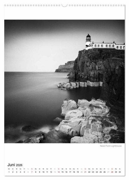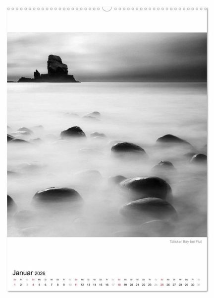 Die Isle of Skye in monochromen Langzeitbelichtungen. Der Kalender zeigt die schottische Trauminsel in quadratischen, reduzierten, stillen Fine Art Aufnahmen. In den minutenlangen Langzeitbelichtungen ziehen Wolken surreale Streifen über den Himmel, das tosende Meer scheint erstarrt. Alle Bewegungen wurden dabei in mystischer Art verwischt, als wäre die Zeit angehalten.