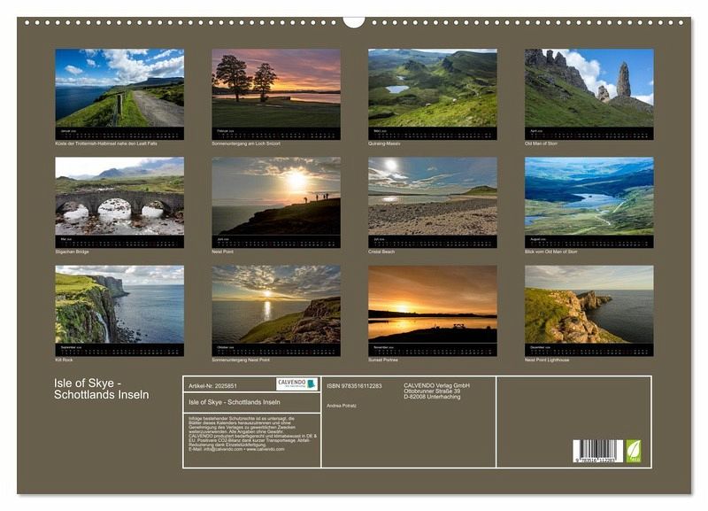 QUALITÄT - Hochwertiger Fotokalender mit 12 wunderschönen Motiven auf lichtbeständigem Bilderdruckpapier, robuste Spiralbindung mit Aufhängebügel.NACHHALTIG - deutliche Abfallreduzierung durch bedarfsgerechte Einzelstückfertigung, umweltfreundliches FSC-zertifiziertes Papier, Produktion in Deutschland, klimabewusste Logistik.PERFEKTES GESCHENK - Kalender für Freunde und Familie, für Kinder und Erwachsene, jung und alt, zu Weihnachten, Geburtstag oder zwischendurch.VIELFALT - Bildkalender in verschiedenen Formaten, z.B. DIN A5, DIN A4, DIN A3 sowie DIN A2. Ob Naturmotiv, Gemälde oder Fotos, ideal für ein persönliches Wohlfühlambiente.Skye, die "Insel des Nebels", einfach zum Träumen und Genießen. von Autor(in): Andrea Potratz.