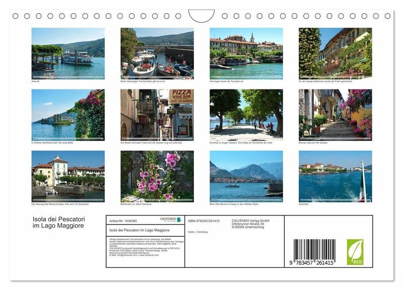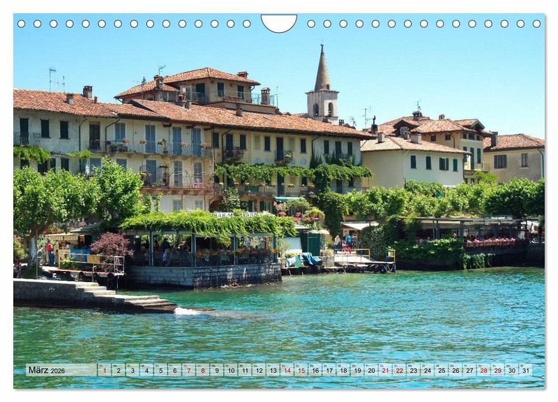 Die bekannteste der Borromäischen Inseln im Lago Maggiore ist die noble Isola Bella. Jedoch die benachbarte Isola dei Pescatori, die Fischerinsel, ist seit 600 Jahren bewohnt und hat trotz des Tourismus ihre ursprüngliche, pittoreske Ausprägung bewahrt. Der Kalender zeigt ein ganzes Jahr lang, wie malerisch diese Insel ist.