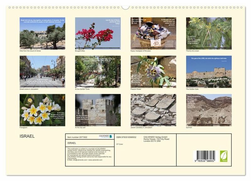 PREMIUM COLLECTION - Brilliant photo calendar with 12 beautiful motifs, high-gloss art print in museum quality.QUALITY - high-quality materials, sturdy back cover with 2 innovative insert pockets for optimum presentation on the wall.SUSTAINABLE - significant reduction in waste thanks to customised one-off production, environmentally friendly FSC-certified paper, production in Germany, climate-conscious logistics.PERFECT GIFT - calendars for friends and family, for children and adults, young and old, for Christmas, birthdays or in between.Insights into the Holy Land von Autor(in): GT Color