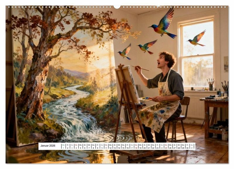 Tauchen Sie ein in eine Welt, in der die Grenze zwischen Gemälde und Wirklichkeit verschwimmt. Jeder Monat zeigt ein surrealistisches Werk, das zum Staunen, Nachdenken und Schmunzeln einlädt. Farben, Formen und Ideen verschmelzen zu einer poetischen Bildsprache, die das Auge herausfordert und die Fantasie beflügelt. Dieses einzigartige, KI-generierte Kunstprojekt lädt dazu ein, Realität neu zu sehen - und zu fragen: Ist das noch Kunst oder schon Magie?