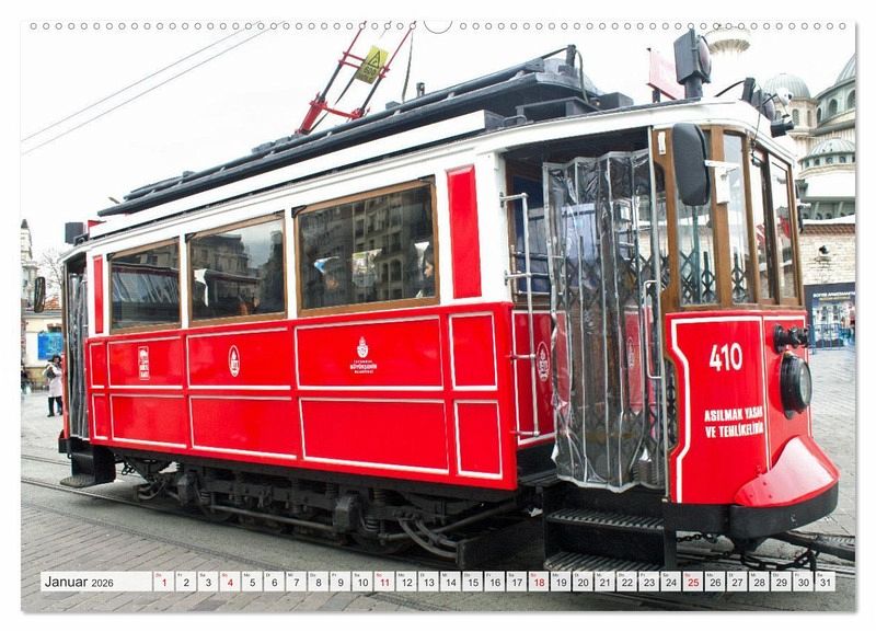 Januar: Historische Straßenbahn auf dem Taksimplatz