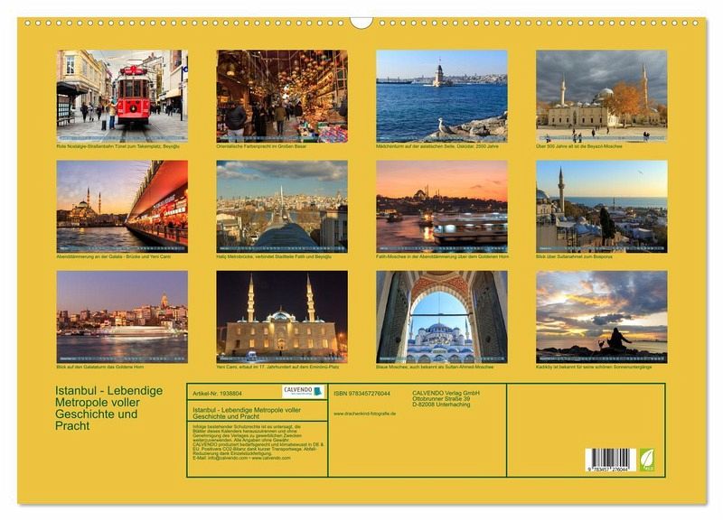Entdecken Sie Istanbul, die Stadt der Gegensätze und Wunder, im neuen Kalender von drachenkind-fotografie. Lassen Sie sich jeden Monat von atemberaubenden Bildern dieser faszinierenden Metropole verzaubern. Von den majestätischen nächtlichen Kuppeln der prächtigen Moschee bis zu dem sagenumwobenen Mädchenturm von Kadiköy - erleben Sie die kulturelle Vielfalt und historische Pracht Istanbuls. Ein perfektes Geschenk für Reisefreunde und Liebhaber exotischer Städte! Tauchen Sie ein in die Geschichte und den Glanz der heimlichen Hauptstadt der Türkei. Istanbul erwartet Sie! Istanbul lässt sich wunderbar mit Zug, Bus Metro erreichen und hat ein großartiges Nahverkehrssystem.