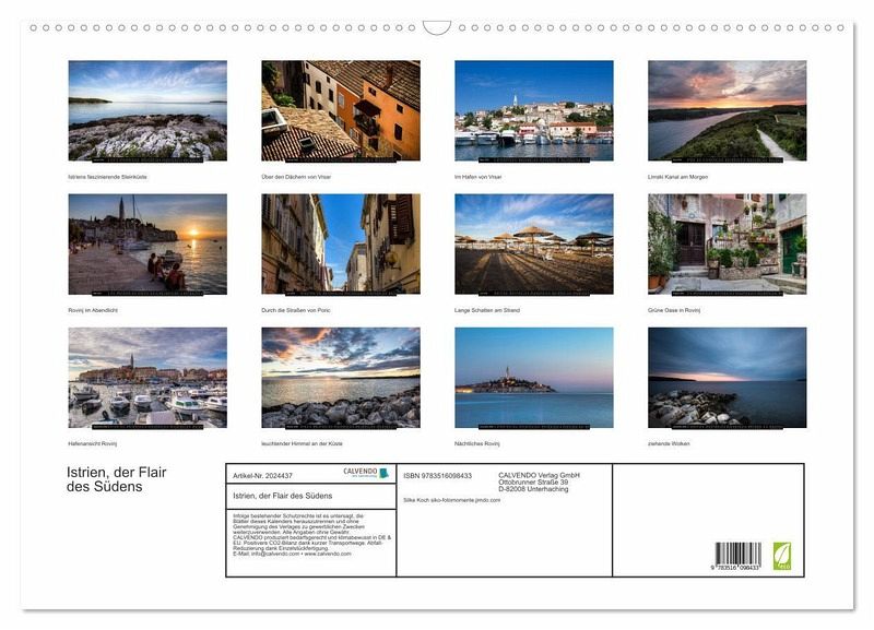 QUALITÄT - Hochwertiger Fotokalender mit 12 wunderschönen Motiven auf lichtbeständigem Bilderdruckpapier, robuste Spiralbindung mit Aufhängebügel.NACHHALTIG - deutliche Abfallreduzierung durch bedarfsgerechte Einzelstückfertigung, umweltfreundliches FSC-zertifiziertes Papier, Produktion in Deutschland, klimabewusste Logistik.PERFEKTES GESCHENK - Kalender für Freunde und Familie, für Kinder und Erwachsene, jung und alt, zu Weihnachten, Geburtstag oder zwischendurch.VIELFALT - Bildkalender in verschiedenen Formaten, z.B. DIN A5, DIN A4, DIN A3 sowie DIN A2. Ob Naturmotiv, Gemälde oder Fotos, ideal für ein persönliches Wohlfühlambiente.Istriens Küstenimpressionen und Rovinj von Autor(in): Silke Koch