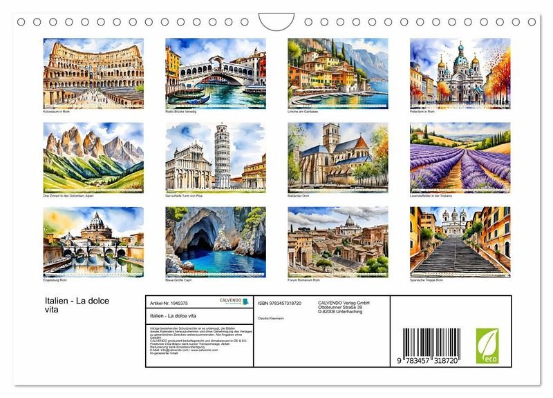 QUALITÄT - Hochwertiger Fotokalender mit 12 wunderschönen Motiven auf lichtbeständigem Bilderdruckpapier, robuste Spiralbindung mit Aufhängebügel.NACHHALTIG - deutliche Abfallreduzierung durch bedarfsgerechte Einzelstückfertigung, umweltfreundliches FSC-zertifiziertes Papier, Produktion in Deutschland, klimabewusste Logistik.PERFEKTES GESCHENK - Kalender für Freunde und Familie, für Kinder und Erwachsene, jung und alt, zu Weihnachten, Geburtstag oder zwischendurch.VIELFALT - Bildkalender in verschiedenen Formaten, z.B. DIN A5, DIN A4, DIN A3 sowie DIN A2. Ob Naturmotiv, Gemälde oder Fotos, ideal für ein persönliches Wohlfühlambiente.Faszinierende Aquarelle sehenswerter Ziele von Autor(in): Claudia Kleemann