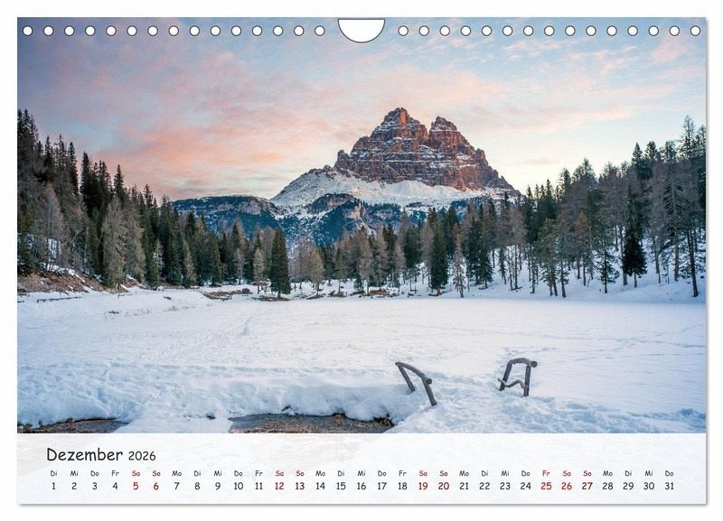 Dezember: Lago Antorno und 3 Zinnen bei Sonnenaufgang