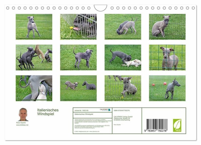 QUALITÄT - Hochwertiger Fotokalender mit 12 wunderschönen Motiven auf lichtbeständigem Bilderdruckpapier, robuste Spiralbindung mit Aufhängebügel.NACHHALTIG - deutliche Abfallreduzierung durch bedarfsgerechte Einzelstückfertigung, umweltfreundliches FSC-zertifiziertes Papier, Produktion in Deutschland, klimabewusste Logistik.PERFEKTES GESCHENK - Kalender für Freunde und Familie, für Kinder und Erwachsene, jung und alt, zu Weihnachten, Geburtstag oder zwischendurch.VIELFALT - Bildkalender in verschiedenen Formaten, z.B. DIN A5, DIN A4, DIN A3 sowie DIN A2. Ob Naturmotiv, Gemälde oder Fotos, ideal für ein persönliches Wohlfühlambiente.Welpen der kleinsten Windhund-Rasse beim Spielen von Autor(in): Klaus Eppele