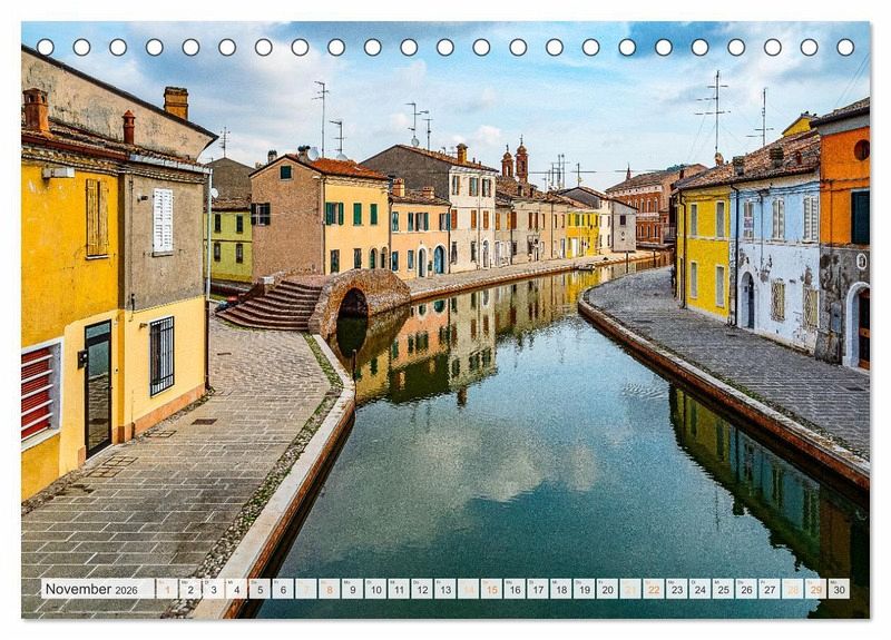 Comacchio, ein Juwel am Po-Delta mit verträumter Altstadt, einer historischen Aalfabrik und berühmten Baudenkmälern. Die "Valli di Comacchio" sind zudem die größte italienische Lagunenlandschaft und Lebensraum für zahlreiche Wasservogelarten, unter anderem Flamingos.