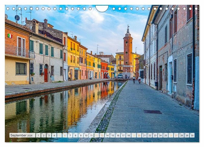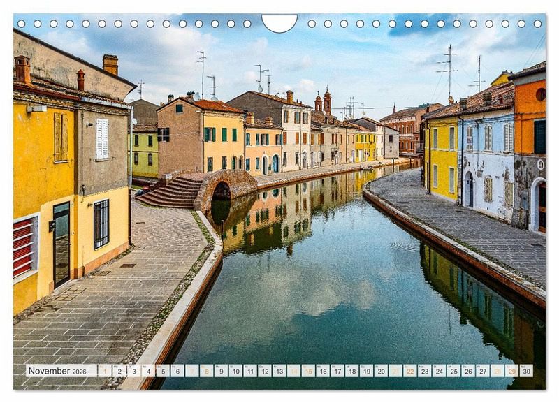 Comacchio, ein Juwel am Po-Delta mit verträumter Altstadt, einer historischen Aalfabrik und berühmten Baudenkmälern. Die "Valli di Comacchio" sind zudem die größte italienische Lagunenlandschaft und Lebensraum für zahlreiche Wasservogelarten, unter anderem Flamingos.