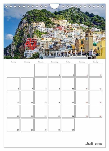 Dieser Wandkalender zeigt Italiens Vielfalt in stimmungsvollen Fotografien: beeindruckende Landschaften, historische Städte und idyllische Dörfer. Perfekt für alle, die das Land lieben oder davon träumen. Stilvoll, zeitlos und ein Jahr voller italienischer Momente.
