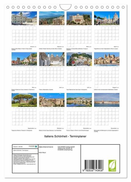 QUALITÄT - Hochwertiger Fotokalender mit 12 wunderschönen Motiven auf lichtbeständigem Bilderdruckpapier, robuste Spiralbindung mit Aufhängebügel.NACHHALTIG - deutliche Abfallreduzierung durch bedarfsgerechte Einzelstückfertigung, umweltfreundliches FSC-zertifiziertes Papier, Produktion in Deutschland, klimabewusste Logistik.PERFEKTES GESCHENK - Kalender für Freunde und Familie, für Kinder und Erwachsene, jung und alt, zu Weihnachten, Geburtstag oder zwischendurch.VIELFALT - Bildkalender in verschiedenen Formaten, z.B. DIN A5, DIN A4, DIN A3 sowie DIN A2. Ob Naturmotiv, Gemälde oder Fotos, ideal für ein persönliches Wohlfühlambiente.Landschaften und Städte Italiens zwischen dem Norden Italiens und Sizilien. von Autor(in): Dieter Meyer