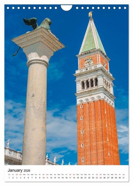 Step into the timeless beauty of Venice with this calendar capturing the city's most iconic and enchanting sights. From the golden sunsets over the Grand Canal to the soaring Campanile in San Marco Square, every image tells a story of history, art, and devotion. Explore majestic churches like Santa Maria della Salute and San Simeon Piccolo, admire the Winged Lion of Venice, and feel the quiet charm of Murano at dusk. Venice-forever floating, forever unforgettable.
