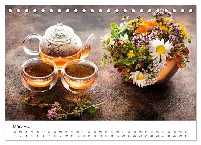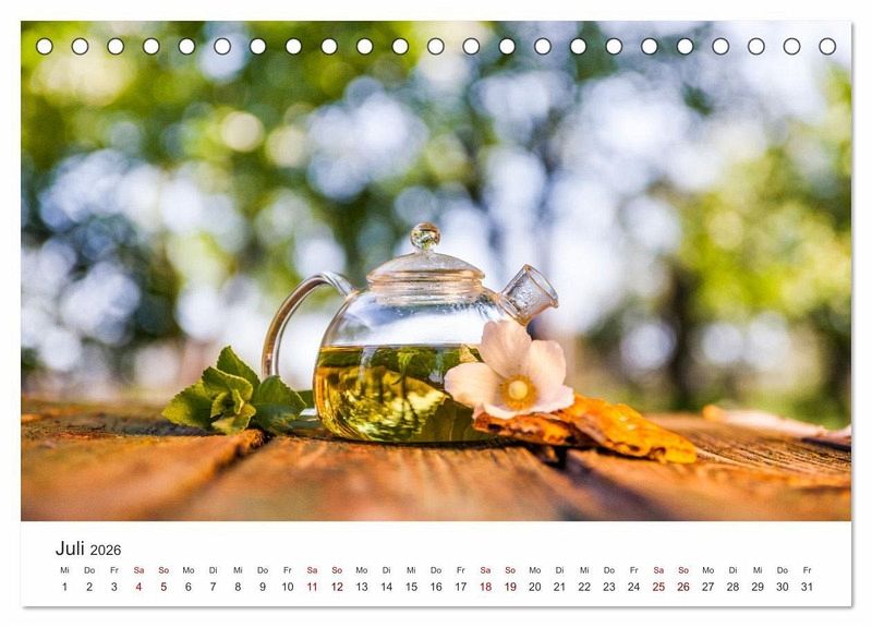 Lehnen Sie sich zurück und entspannen Sie bei einer beruhigenden oder belebenden Tasse Tee. Dieser Kalender zeigt 12 wunderschöne Aufnahmen von Tee, wie er hergestellt wird, der Zeremonie und der einzelnen Komponenten.