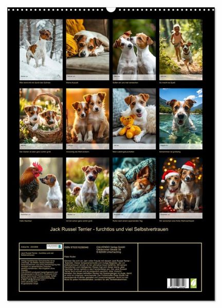 Gönnen Sie sich ein Jahr voller Freude mit diesem Jack Russel Terrier - Kalender. Dieser temperamentvolle und mutige Begleiter, der vor Selbstvertrauen strotzt, ist der ultimative treue Gefährte. Mit seinem freundlichen und intelligenten Wesen fügt sich dieser kleine, aber mächtige Terrier nahtlos in das Familienleben ein. Der Jack Russell Terrier lernt schnell und ist erstaunlich sportlich. Aber Vorsicht - behalten Sie diesen lebhaften Racker bei Spaziergängen im Auge, damit er nicht im Unterholz verschwindet. Der Fotokünstler Peter Roder hat 12 bezaubernde KI-Bilder gestaltet und…mehr