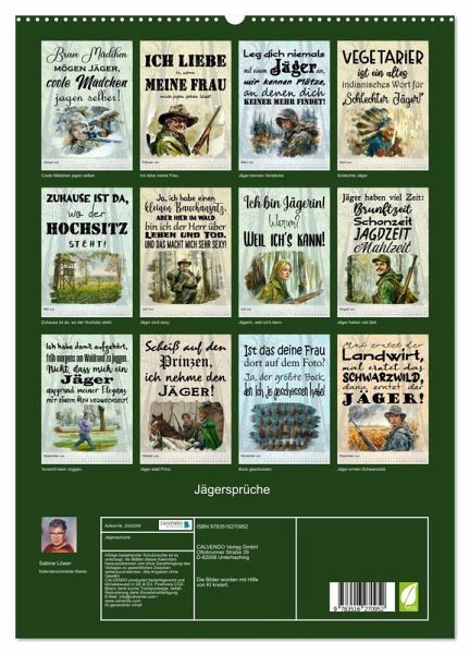 PREMIUM-LINIE - Brillanter Fotokalender mit 12 wunderschönen Motiven, Kunstdruck in Hochglanz in Museumsqualität.QUALITÄT - edle Materialien, stabile Rückwand mit 2 innovativen Einstecktaschen für eine optimale Präsentation an der Wand.NACHHALTIG - deutliche Abfallreduzierung durch bedarfsgerechte Einzelstückfertigung, umweltfreundliches FSC-zertifiziertes Papier, Produktion in Deutschland, klimabewusste Logistik.PERFEKTES GESCHENK - Kalender für Freunde und Familie, für Kinder und Erwachsene, jung und alt, zu Weihnachten, Geburtstag oder zwischendurch.Humorvolles rund um die Jagd von Autor(in): Sabine Löwer