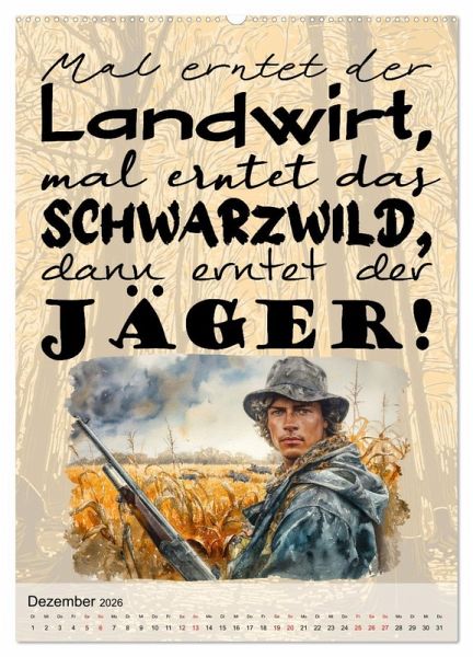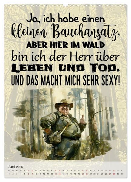 Entdecken Sie den humorvollen Jagd- und Jägerkalender! Jeden Monat ein Lächeln auf den Lippen mit witzigen Sprüchen und beeindruckenden, KI-generierten Bildern. Perfekt als Geschenk für alle Jägerinnen und Jäger oder als Blickfang in der eigenen Wohnung. Sichern Sie sich jetzt Ihren Kalender und erleben Sie jeden Monat eine neue, humorvolle Seite der Jagd!