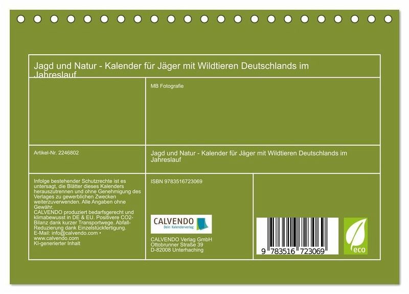 QUALITÄT - Hochwertiger Fotokalender mit 12 wunderschönen Motiven auf lichtbeständigem Bilderdruckpapier, robuste Spiralbindung.NACHHALTIG - deutliche Abfallreduzierung durch bedarfsgerechte Einzelstückfertigung, umweltfreundliches FSC-zertifiziertes Papier, Produktion in Deutschland, klimabewusste Logistik.PERFEKTES GESCHENK - Kalender für Freunde und Familie, für Kinder und Erwachsene, jung und alt, zu Weihnachten, Geburtstag oder zwischendurch.VIELFALT - Bildkalender in verschiedenen Formaten, z.B. DIN A5, DIN A4, DIN A3 sowie DIN A2. Ob Naturmotiv, Gemälde oder Fotos, ideal für ein persönliches Wohlfühlambiente.Stimmungsvoller Jagdkalender mit heimischem Wild. Rotwild, Rehwild und Schwarzwild im Wechsel der Jahreszeiten. Perfekt als Geschenk für Jäger und Naturfreunde - Natur, Wald und Wild in ihrer schönsten Form. von Autor(in): Michael Bihlmayer