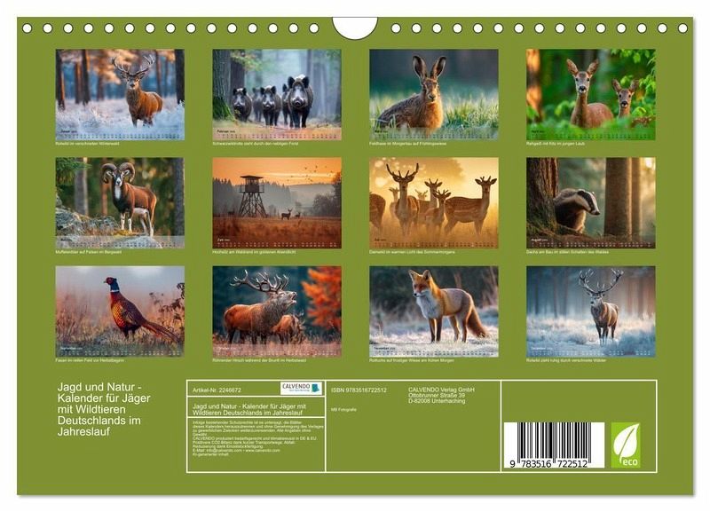 QUALITÄT - Hochwertiger Fotokalender mit 12 wunderschönen Motiven auf lichtbeständigem Bilderdruckpapier, robuste Spiralbindung mit Aufhängebügel.NACHHALTIG - deutliche Abfallreduzierung durch bedarfsgerechte Einzelstückfertigung, umweltfreundliches FSC-zertifiziertes Papier, Produktion in Deutschland, klimabewusste Logistik.PERFEKTES GESCHENK - Kalender für Freunde und Familie, für Kinder und Erwachsene, jung und alt, zu Weihnachten, Geburtstag oder zwischendurch.VIELFALT - Bildkalender in verschiedenen Formaten, z.B. DIN A5, DIN A4, DIN A3 sowie DIN A2. Ob Naturmotiv, Gemälde oder Fotos, ideal für ein persönliches Wohlfühlambiente.Stimmungsvoller Jagdkalender mit heimischem Wild. Rotwild, Rehwild und Schwarzwild im Wechsel der Jahreszeiten. Perfekt als Geschenk für Jäger und Naturfreunde - Natur, Wald und Wild in ihrer schönsten Form. von Autor(in): Michael Bihlmayer