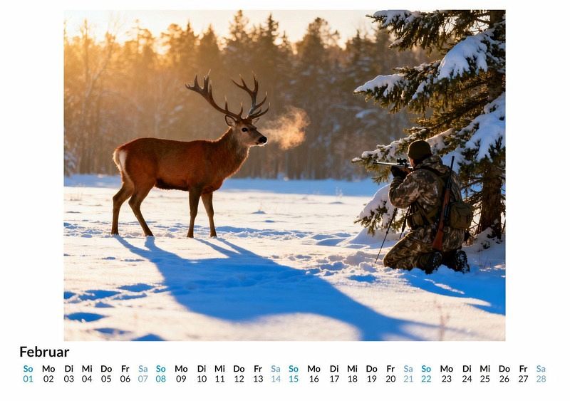 Stille liegt über dem erwachenden Wald, nur das leise Rascheln von Laub durchbricht die Ruhe. Der erste Lichtstrahl fällt durch das dichte Blätterdach und enthüllt die Spuren der Nacht. Es sind diese Augenblicke voller Konzentration und Verbundenheit mit der Natur, die den Kern der Jagd und der Wildtierbeobachtung ausmachen. Der Kalender "Jagd- und Wildtiermotive" fängt genau diese Stimmung für das ganze Jahr ein. Dieser Kalender ist eine ideale Wahl: * Für Jägerinnen und Jäger, die die Ästhetik ihres Handwerks schätzen. * Für Naturfreunde, die die heimische Tierwelt in ihrem natürlichen Lebensraum erleben möchten. * Für alle, die eine Faszination für die unberührte Wildnis und ihre Bewohner hegen. Monat für Monat begleitet dieser Kalender durch die Jahreszeiten im Revier. Die Motive zeigen nicht nur das Wild selbst, sondern auch die Landschaften, in denen es lebt. Von nebligen Morgenstunden im Herbstwald über verschneite Winterlandschaften bis hin zu den ersten grünen Trieben im Frühling. Jede Szene erzählt eine kleine Geschichte von Geduld, Beobachtung und dem Kreislauf des Lebens. Die Motive wurden durch die Analyse unzähliger Naturaufnahmen von einem digitalen Prozess komponiert, um stimmungsvolle Kompositionen zu erschaffen. Mit dem Kauf dieses Kalenders kann man Folgendes erwarten: * Zwölf Monatsblätter mit Szenen aus der Welt der Jagd und Wildtierbeobachtung. * Ein praktisches Kalendarium, das Platz für eigene Notizen bietet. * Eine ganzjährige Begleitung durch die Facetten der heimischen Natur. Der Kalender "Jagd- und Wildtiermotive" ist mehr als nur ein Zeitplaner. Er ist eine tägliche Erinnerung an die Schönheit und Ruhe der Wildnis. Ein Stück Natur für die eigenen vier Wände, das die Vorfreude auf den nächsten Ansitz oder die nächste Wanderung weckt. Ein Blick auf die Monatsmotive lohnt sich.