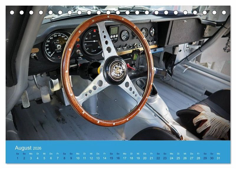 August: Cockpit Jaguar E-Type Lightweight FIA