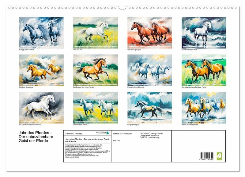 QUALITÄT - Hochwertiger Fotokalender mit 12 wunderschönen Motiven auf lichtbeständigem Bilderdruckpapier, robuste Spiralbindung mit Aufhängebügel.NACHHALTIG - deutliche Abfallreduzierung durch bedarfsgerechte Einzelstückfertigung, umweltfreundliches FSC-zertifiziertes Papier, Produktion in Deutschland, klimabewusste Logistik.PERFEKTES GESCHENK - Kalender für Freunde und Familie, für Kinder und Erwachsene, jung und alt, zu Weihnachten, Geburtstag oder zwischendurch.VIELFALT - Bildkalender in verschiedenen Formaten, z.B. DIN A5, DIN A4, DIN A3 sowie DIN A2. Ob Naturmotiv, Gemälde oder Fotos, ideal für ein persönliches Wohlfühlambiente.Majestätische Pferde in voller Bewegung, dieser Kalender fängt die Dynamik, Freiheit und unbezähmbare Schönheit dieser edlen Tiere ein. von Autor(in): Anja Frost