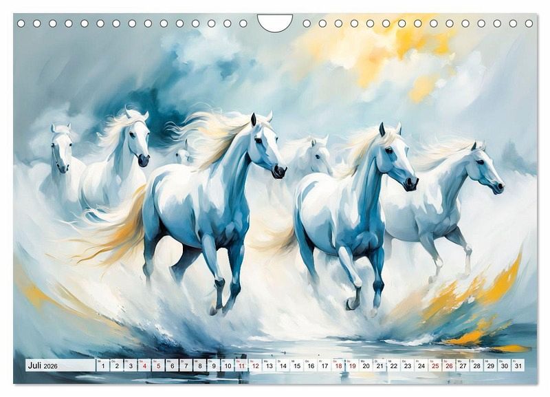 Tauche ein in die Welt der Pferde - voller Eleganz, Tempo und ungebändigtem Geist. Der KI-generierte Kalender "Jahr des Pferdes - Der unbezähmbare Geist der Pferde" zeigt zwölf beeindruckende Motive, die die Schönheit und Kraft dieser faszinierenden Tiere einfangen. Von wilden Galoppaden bis zu sanften Momenten in der Natur - jedes Bild erzählt seine eigene Geschichte.