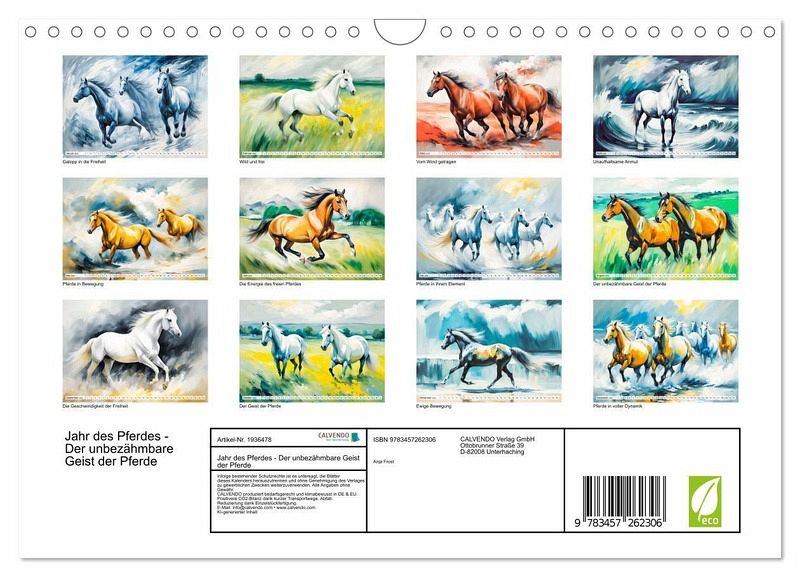 QUALITÄT - Hochwertiger Fotokalender mit 12 wunderschönen Motiven auf lichtbeständigem Bilderdruckpapier, robuste Spiralbindung mit Aufhängebügel.NACHHALTIG - deutliche Abfallreduzierung durch bedarfsgerechte Einzelstückfertigung, umweltfreundliches FSC-zertifiziertes Papier, Produktion in Deutschland, klimabewusste Logistik.PERFEKTES GESCHENK - Kalender für Freunde und Familie, für Kinder und Erwachsene, jung und alt, zu Weihnachten, Geburtstag oder zwischendurch.VIELFALT - Bildkalender in verschiedenen Formaten, z.B. DIN A5, DIN A4, DIN A3 sowie DIN A2. Ob Naturmotiv, Gemälde oder Fotos, ideal für ein persönliches Wohlfühlambiente.Majestätische Pferde in voller Bewegung, dieser Kalender fängt die Dynamik, Freiheit und unbezähmbare Schönheit dieser edlen Tiere ein. von Autor(in): Anja Frost