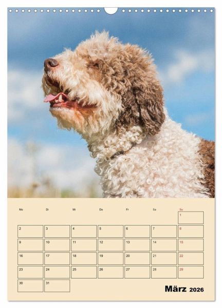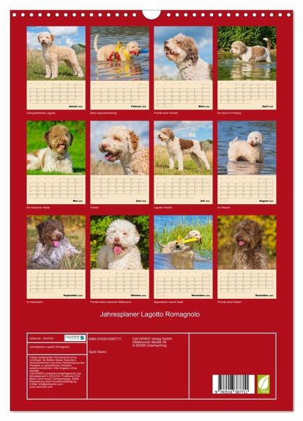 QUALITÄT - Hochwertiger Fotokalender mit 12 wunderschönen Motiven auf lichtbeständigem Bilderdruckpapier, robuste Spiralbindung mit Aufhängebügel.NACHHALTIG - deutliche Abfallreduzierung durch bedarfsgerechte Einzelstückfertigung, umweltfreundliches FSC-zertifiziertes Papier, Produktion in Deutschland, klimabewusste Logistik.PERFEKTES GESCHENK - Kalender für Freunde und Familie, für Kinder und Erwachsene, jung und alt, zu Weihnachten, Geburtstag oder zwischendurch.VIELFALT - Bildkalender in verschiedenen Formaten, z.B. DIN A5, DIN A4, DIN A3 sowie DIN A2. Ob Naturmotiv, Gemälde oder Fotos, ideal für ein persönliches Wohlfühlambiente.Der Lagotto Romagnolo auf 13 zauberhaften Kalenderblättern von Autor(in): SiSta-Tierfoto