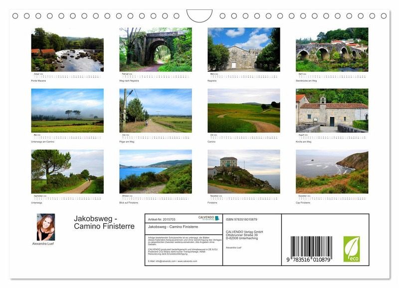 QUALITÄT - Hochwertiger Fotokalender mit 12 wunderschönen Motiven auf lichtbeständigem Bilderdruckpapier, robuste Spiralbindung mit Aufhängebügel.NACHHALTIG - deutliche Abfallreduzierung durch bedarfsgerechte Einzelstückfertigung, umweltfreundliches FSC-zertifiziertes Papier, Produktion in Deutschland, klimabewusste Logistik.PERFEKTES GESCHENK - Kalender für Freunde und Familie, für Kinder und Erwachsene, jung und alt, zu Weihnachten, Geburtstag oder zwischendurch.VIELFALT - Bildkalender in verschiedenen Formaten, z.B. DIN A5, DIN A4, DIN A3 sowie DIN A2. Ob Naturmotiv, Gemälde oder Fotos, ideal für ein persönliches Wohlfühlambiente.Pilgerweg von Santiago de Compostela nach Finisterre von Autor(in): Alexandra Luef