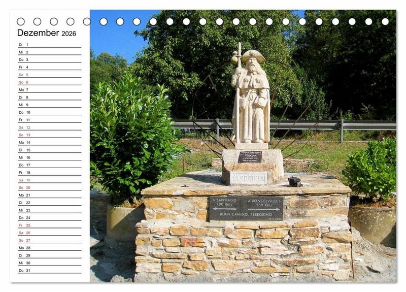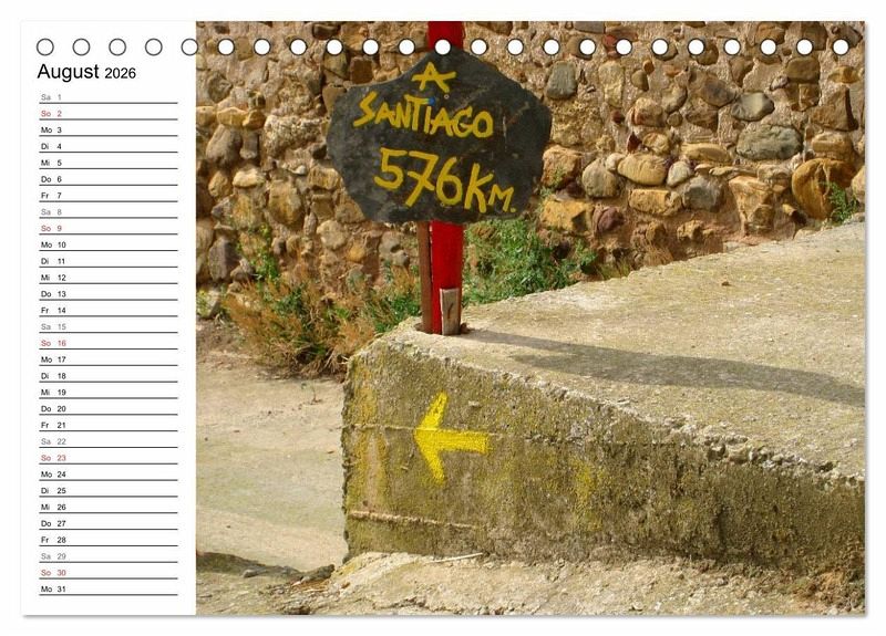 Es gibt wohl kaum jemanden der noch nie etwas vom Jakobsweg in Spanien, genannt auch Camino Frances, gehört hat. Dieser 800 km lange Pilgerweg führt von St. Jean-Pied-de-Port nach Santiago de Compostela. Tragen sie Termine, Geburtstage bequem in diesen Planer ein.