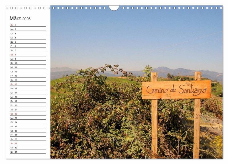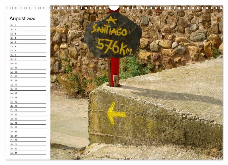 Es gibt wohl kaum jemanden der noch nie etwas vom Jakobsweg in Spanien, genannt auch Camino Frances, gehört hat. Dieser 800 km lange Pilgerweg führt von St. Jean-Pied-de-Port nach Santiago de Compostela. Tragen sie Termine, Geburtstage bequem in diesen Planer ein.